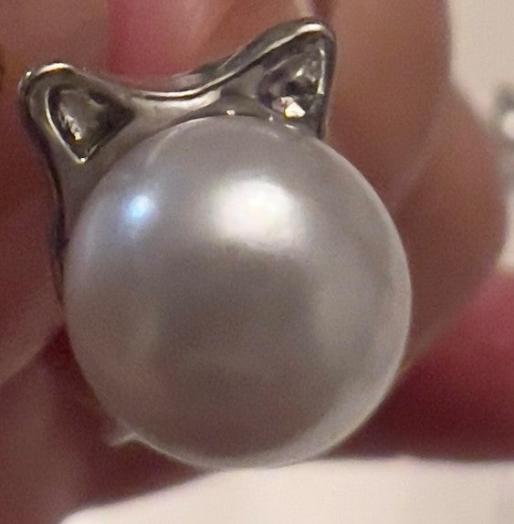 Kitty cat super cute silver and pearl earrings